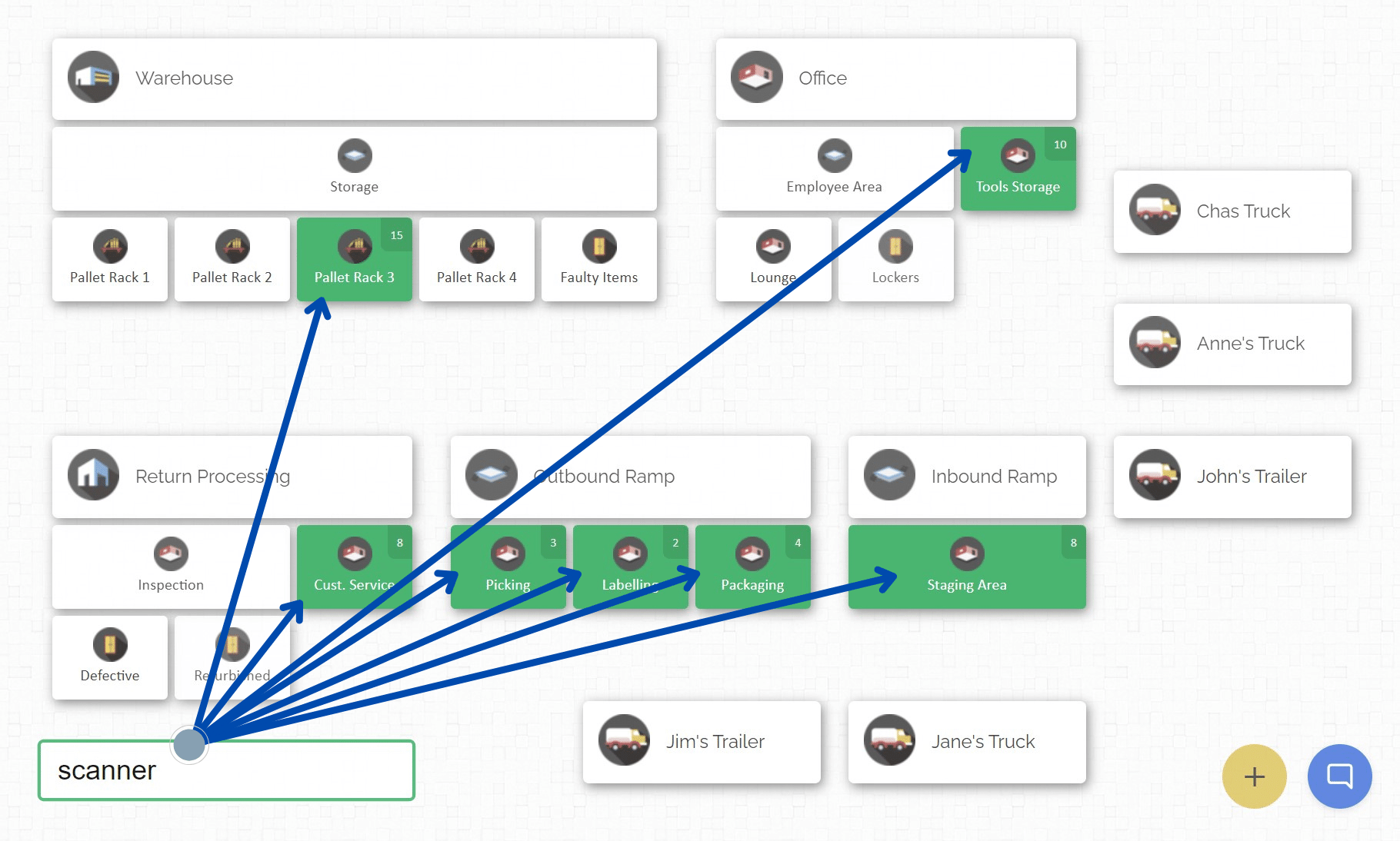 It offers a bird’s-eye view of the complete inventory landscape and categorizes inventory into locations and sub-locations, resulting in a clear and detailed picture.