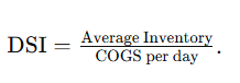If we use the example above with turnover 4 per year, the DSI would be about 365/4 ≈ 91 days. That means on average, items sit in inventory for 91 days before being used or sold.